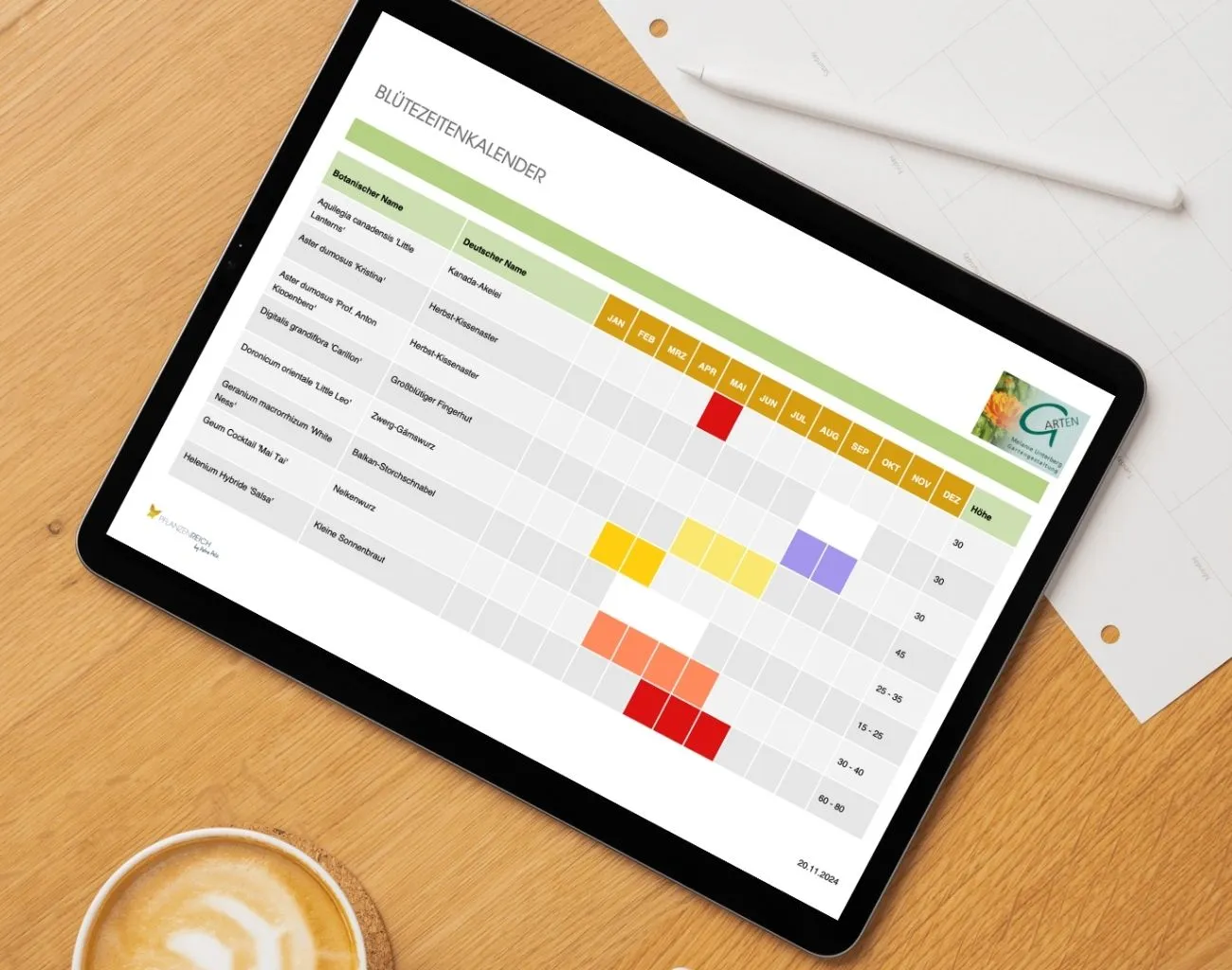 - Einen Blütezeitenkalender für ganzjährige Farbakzente